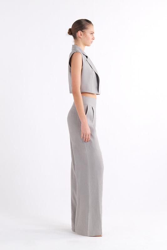 BRIONY BLACK GREY HIGH-WAISTED WIDE-LEG PANTOLON