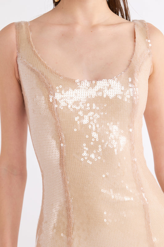 SOLEIL SEQUINED SQUARE-NECK MAXI ELBİSE