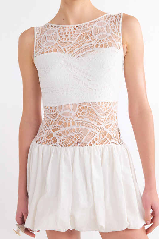 GABRIELLE LACE-DETAILED SLEEVELESS WHITE MINI ELBİSE