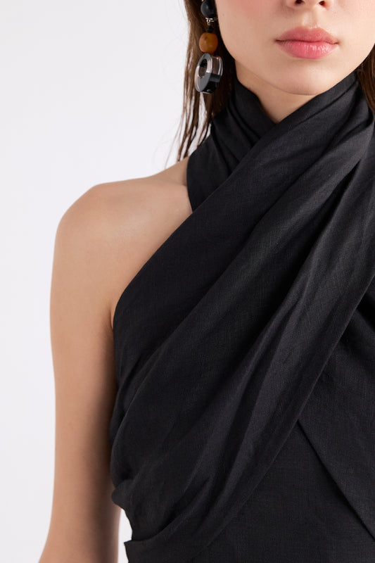 ELISA RUFFLE-DETAIL STRAPPY MAVİ CROP TOP