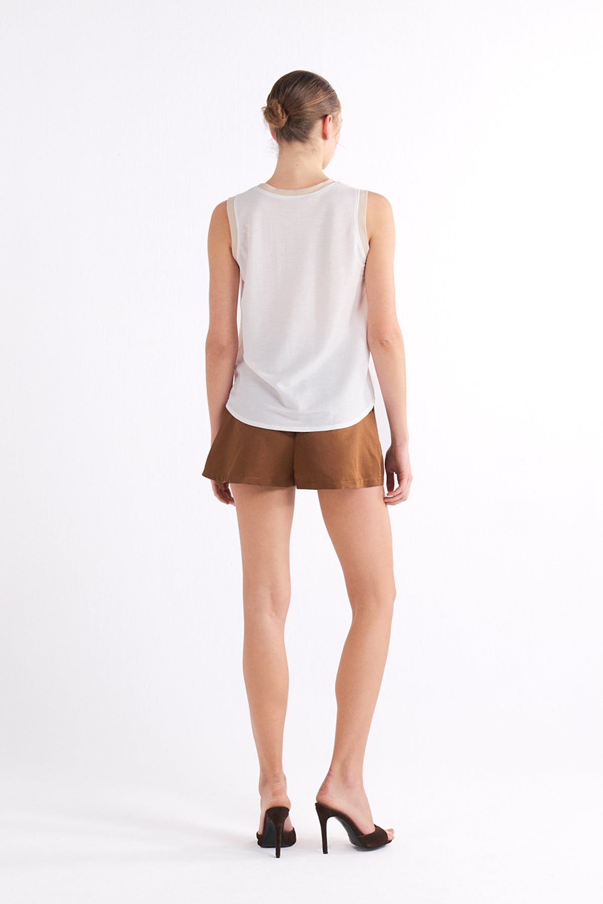 CARRIE CONTRAST-DETAILED BEJ TİŞÖRT