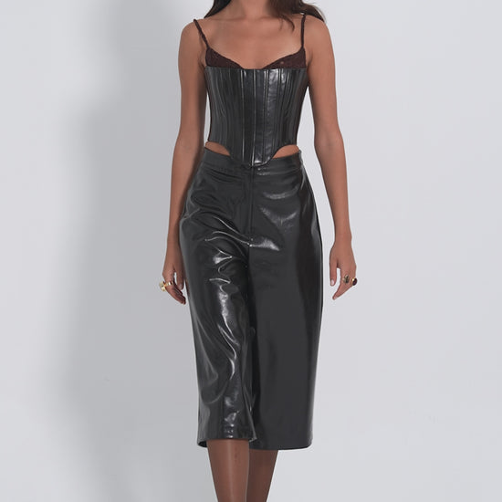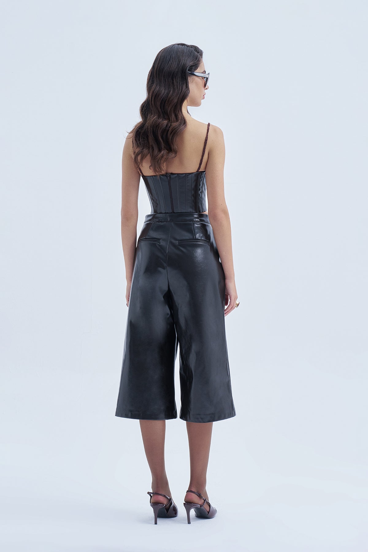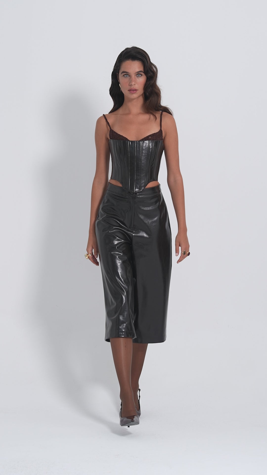 Koyu Kahverengi Vegan Deri, Dantel Askı Detaylı, Balenli Büstiyer