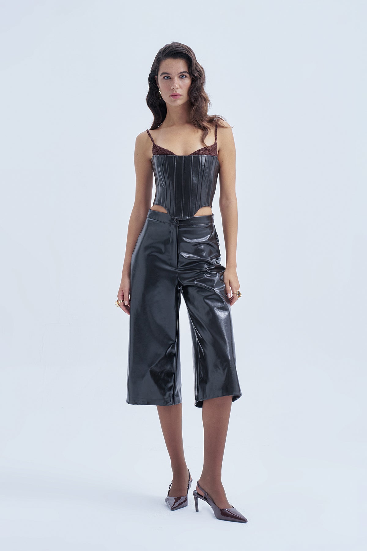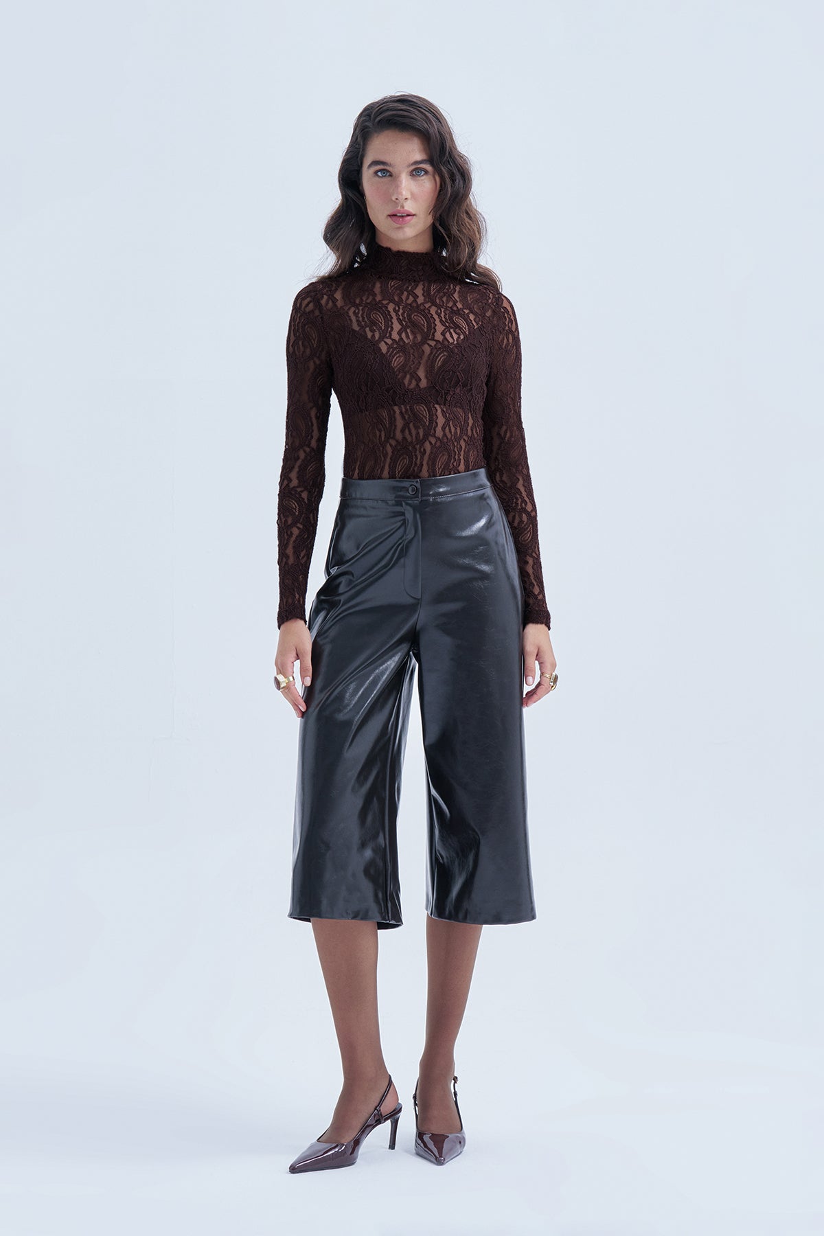 Koyu Kahverengi Deri, Geniş Kesim Bermuda Pantolon