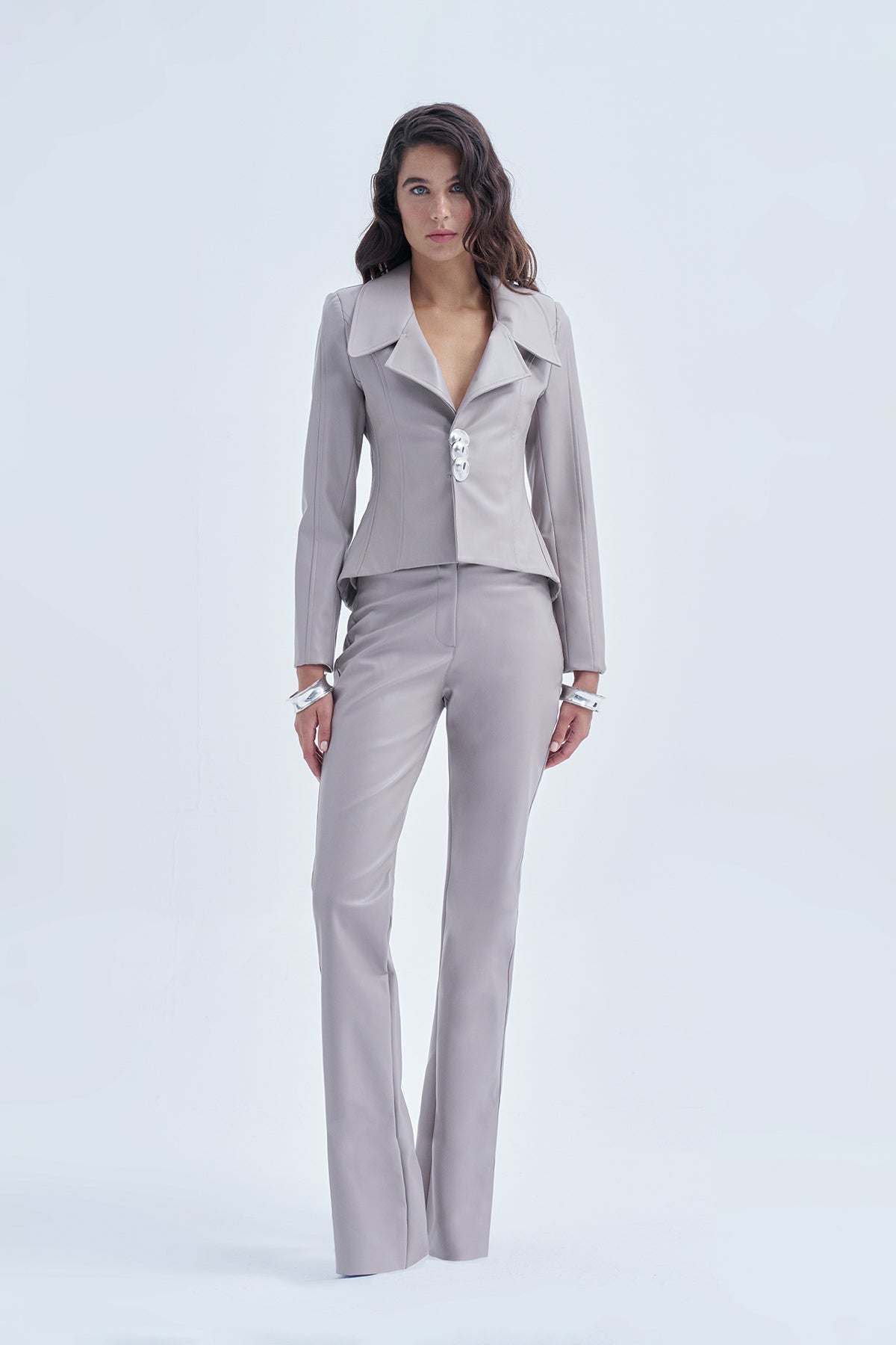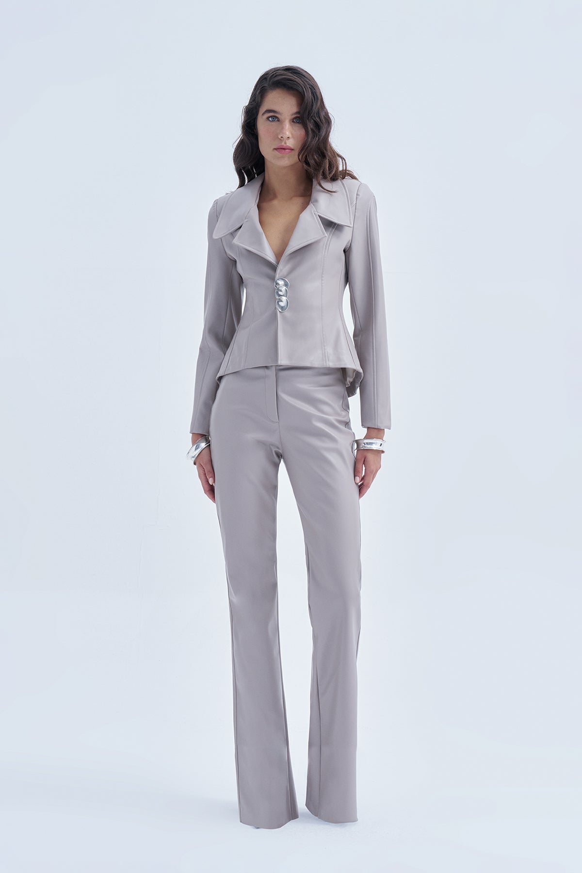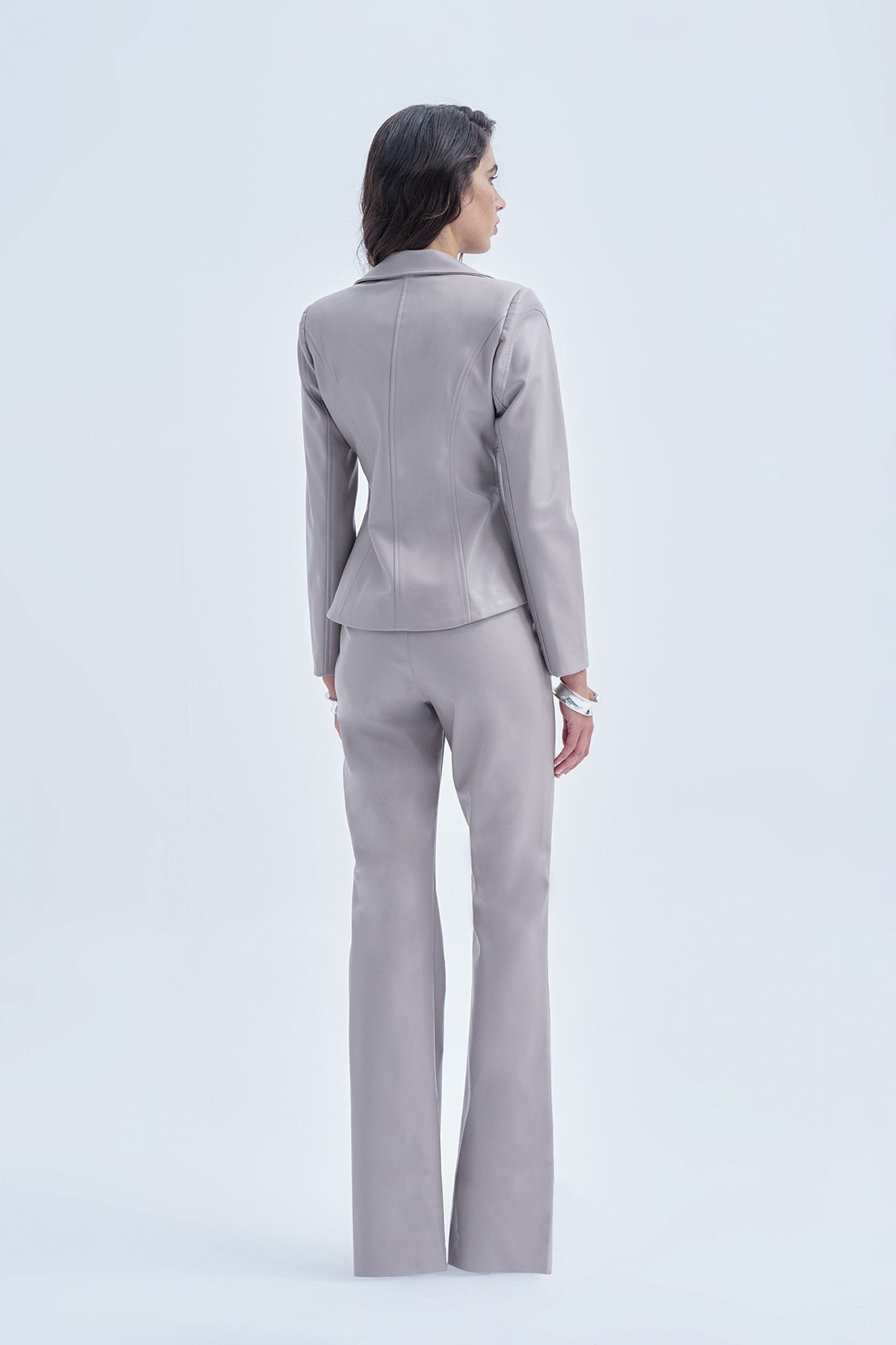 Vizon Deri, Yüksek Bel, Klasik Kesim, Geniş Paçalı Pantolon